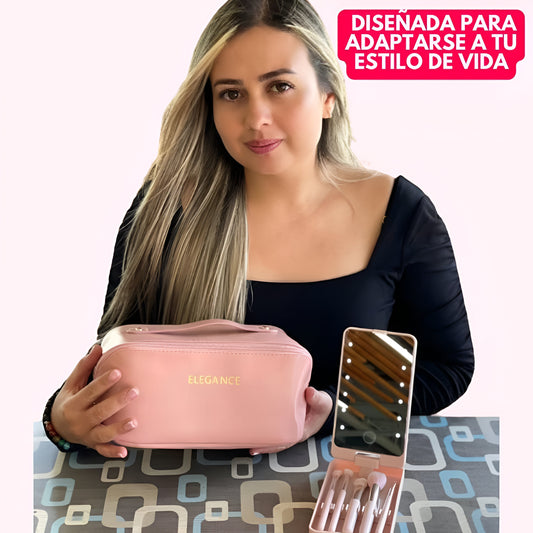 ELGANCEBAG™: ORGANIZADOR PREMIUM DE MAQUILLAJE | OBSEQUIO: SET DE BROCHAS CON ESPEJO