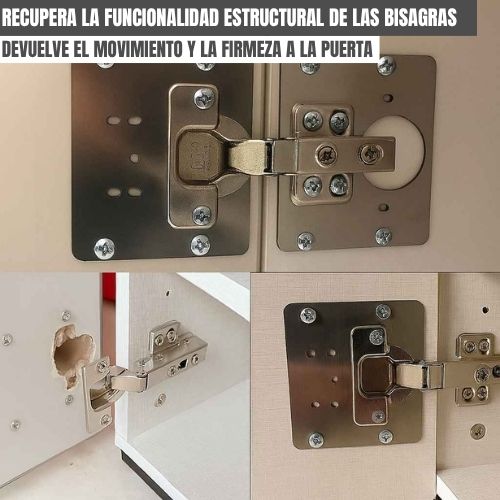 PlacaFix™: Kit X 8 Placas de reparación para bisagras, Incluye; Tornillos