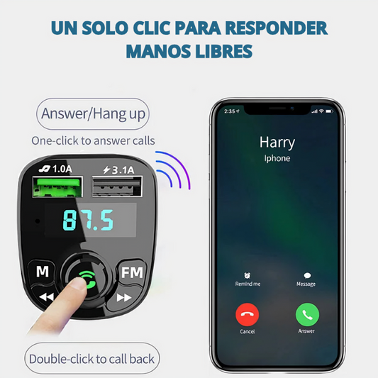 TRANSMISOR FM BLUETOOTH DE ÚLTIMA GENERACIÓN CON CARGADOR RÁPIDO USB