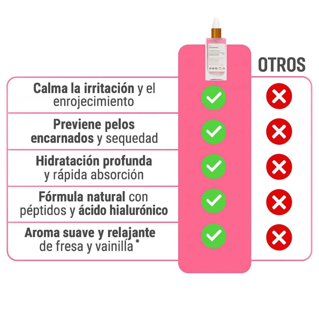 ✅Beneficios: Hidratación profunda, calma la piel, unifica el tono, previene vellos encarnados