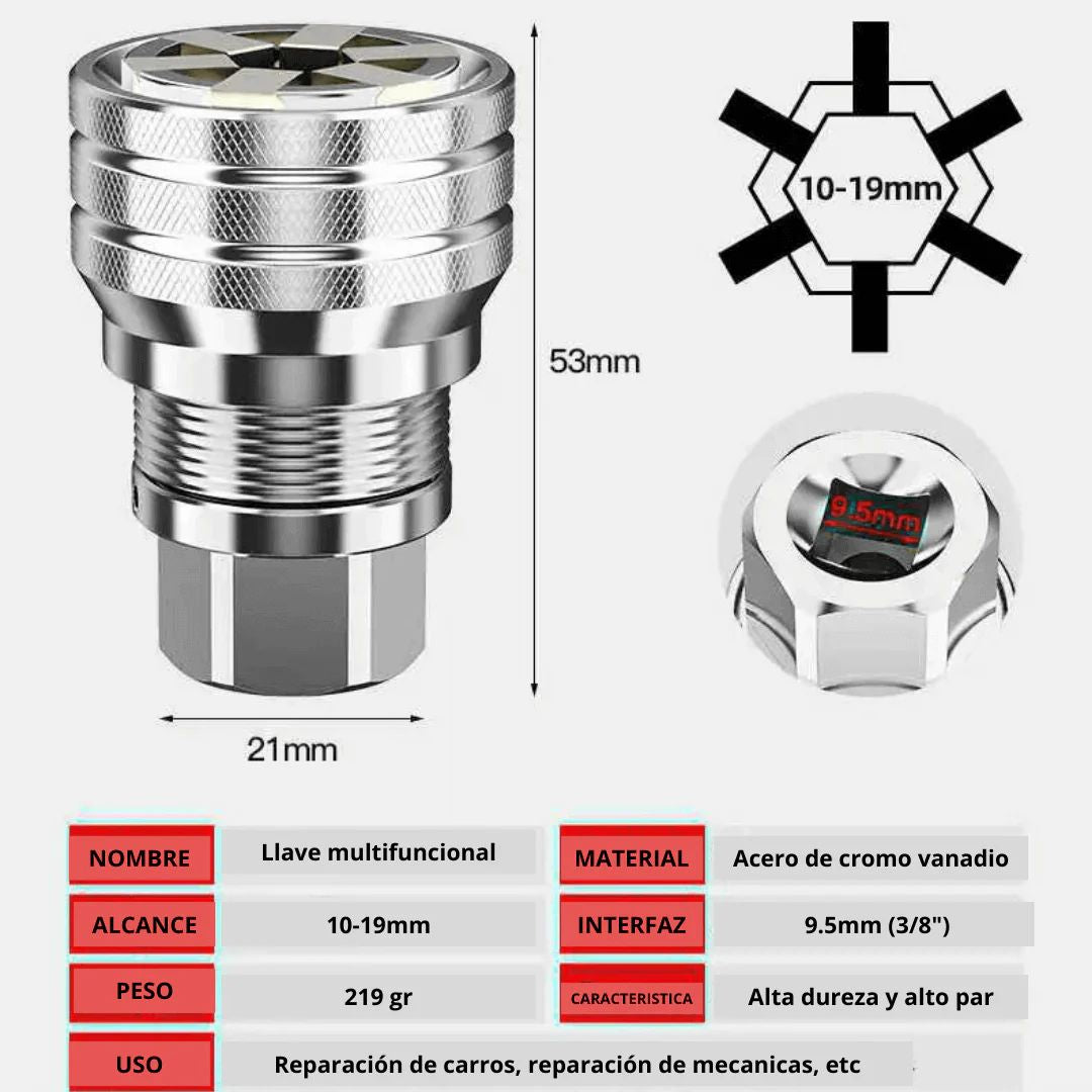 ✅ Se adapta a cualquier llave estándar de 3/8".