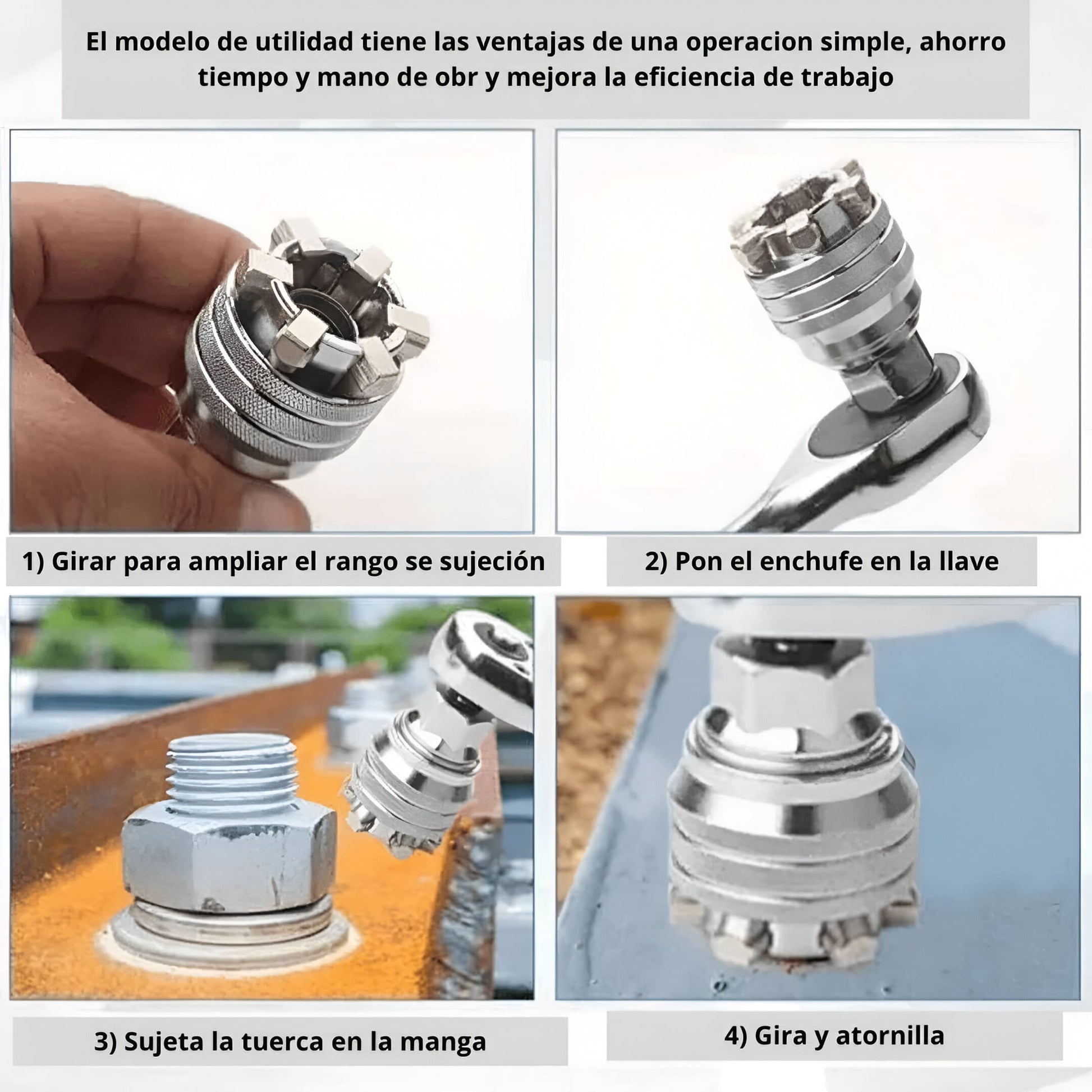 Te presentamos el adapatador multifuncional todo en uno es una solución innovadora diseñada para facilitar la tarea de sacar y poner pernos, tuercas y tornillos de manera rápida y eficiente