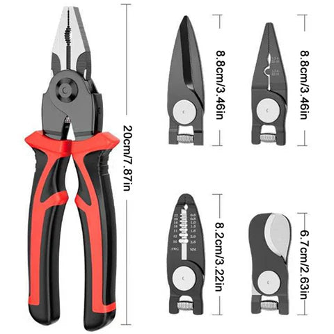 Con cabezales intercambiables que se cambian en segundos, el Alicate multifuncional 5 en 1 te permite pelar cables, cortar alambres y láminas, y mucho más, todo con una sola herramienta.