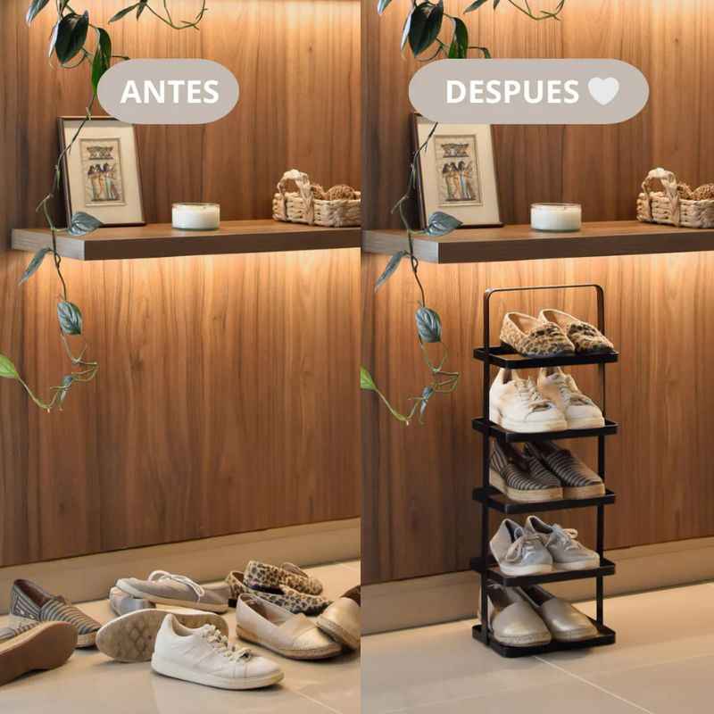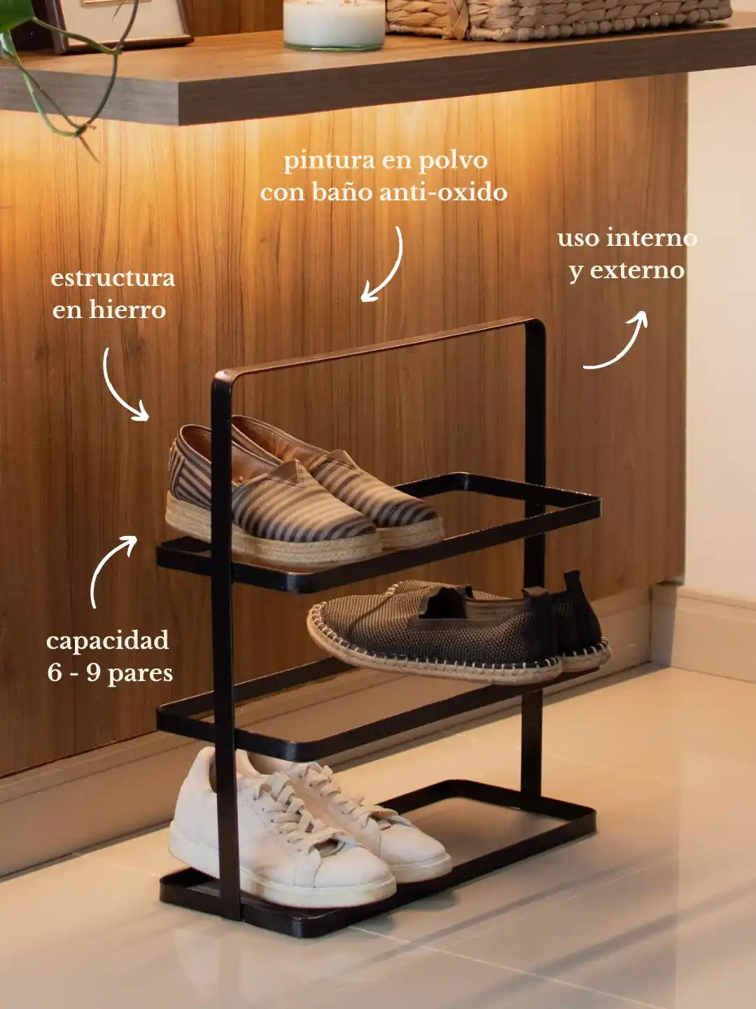 Cuenta con 3 niveles metálicos que mantienen cada par separado, limpio y organizado, evitando que la suciedad de un zapato se pase al otro.
