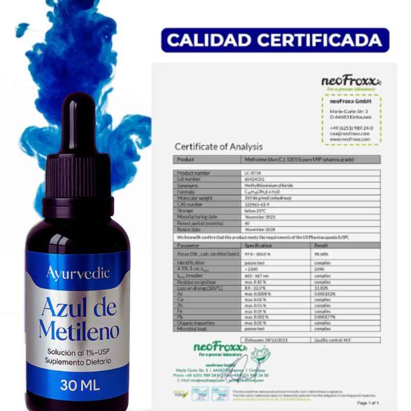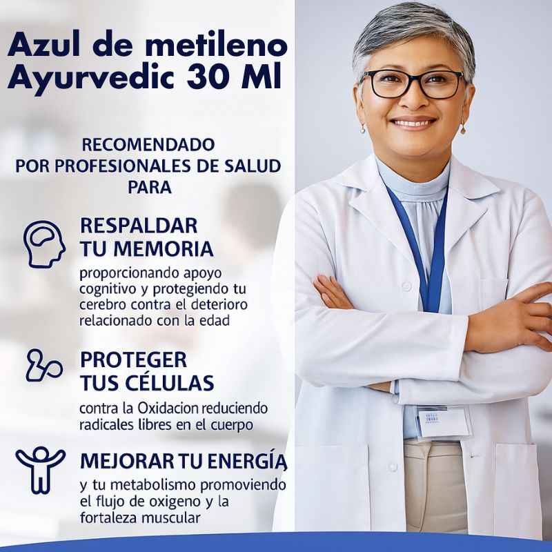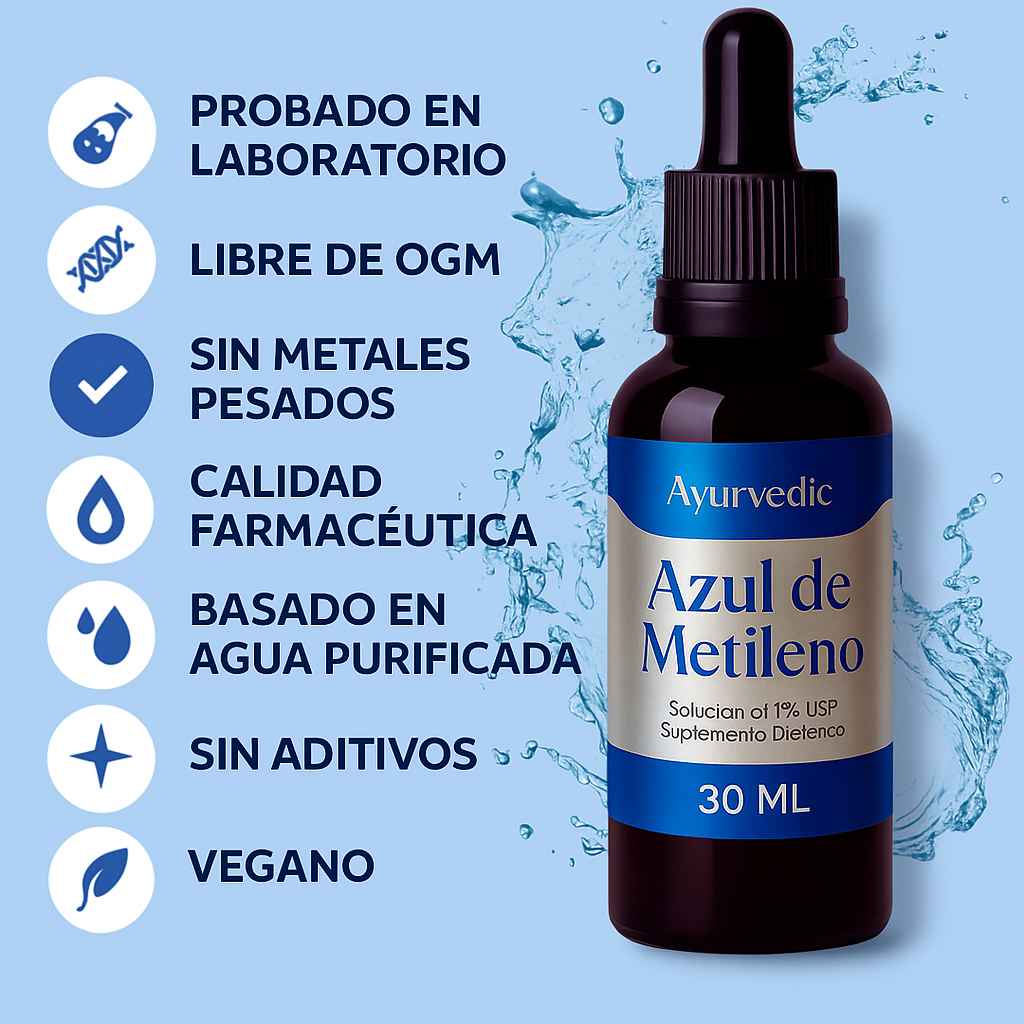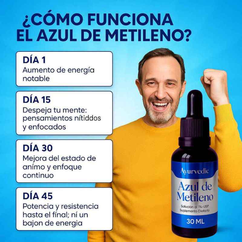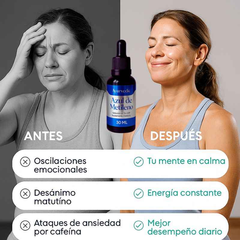 Ahí es donde entra el Azul de Metileno Ayurvedic, una fórmula avanzada que oxigena tu cerebro activa tus células y mejora tu claridad mental desde el primer uso.