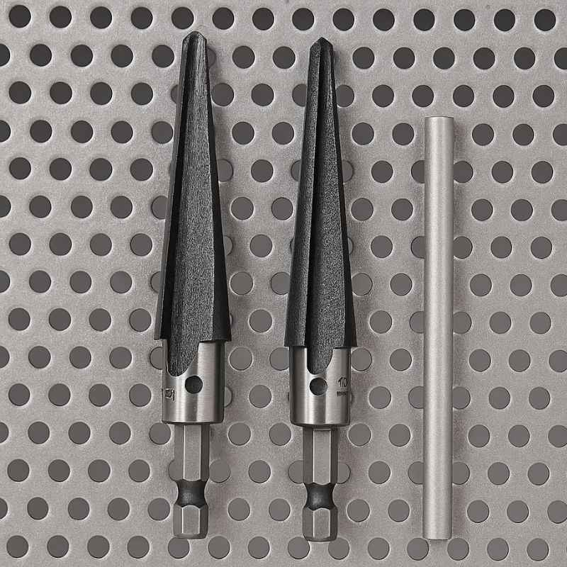 Su diseño cónico escalonado permite perforar de forma progresiva y precisa, escariando al mismo tiempo para eliminar rebabas y mejorar el ajuste de tornillos o remaches.