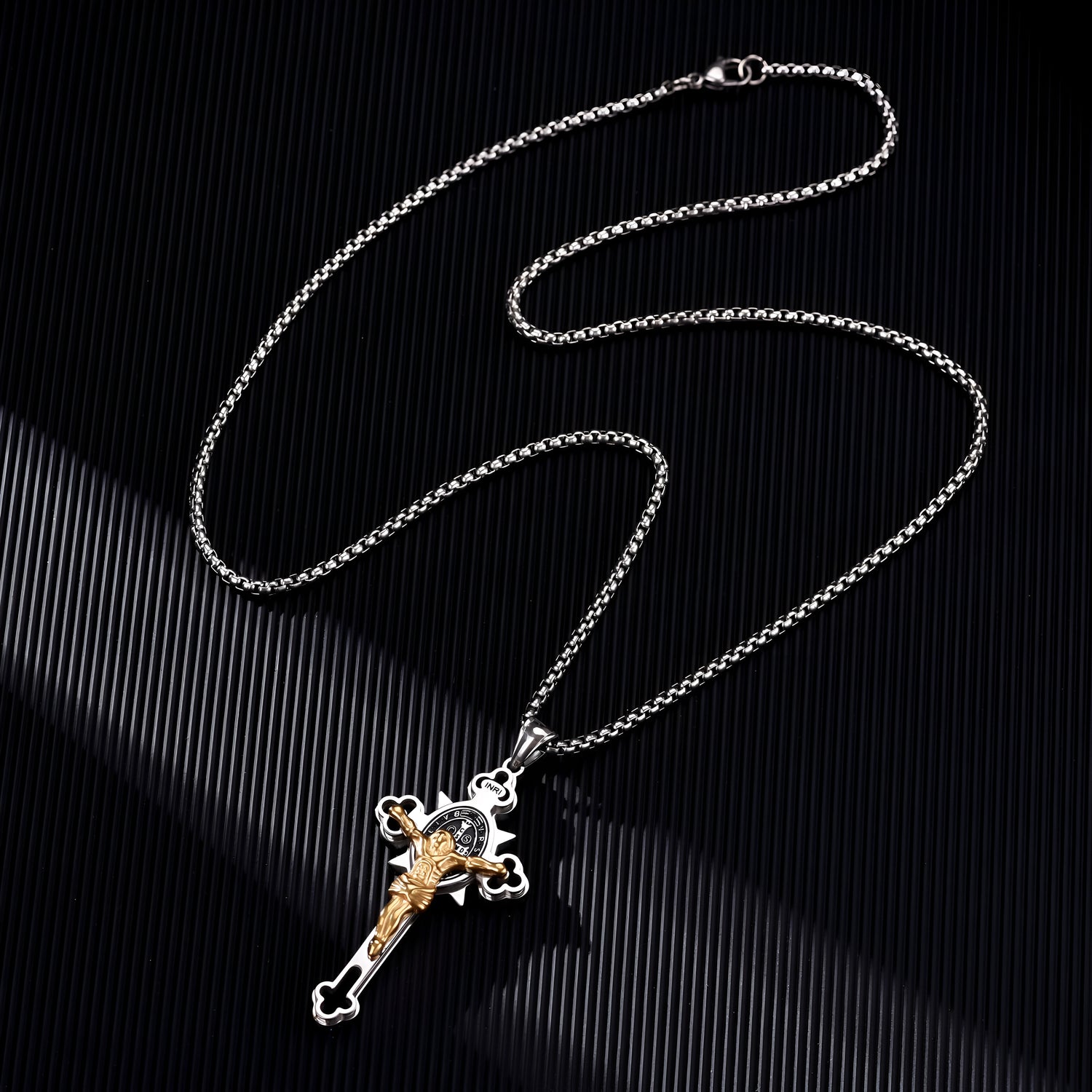 (1) Cadena con crucifijo y medalla de san benito| protección para tu vida.