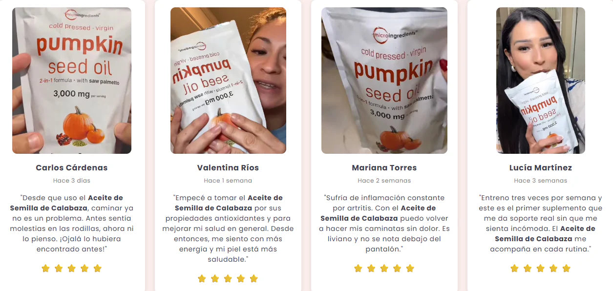 - 3000 mg de aceite puro de semilla de calabaza prensado en frío por porción