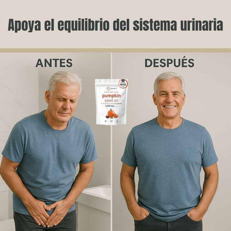 Favorece un flujo urinario más regular, reduce las molestias nocturnas y ayuda a mantener una próstata saludable, gracias a sus compuestos naturales que apoyan el equilibrio del sistema urinario.