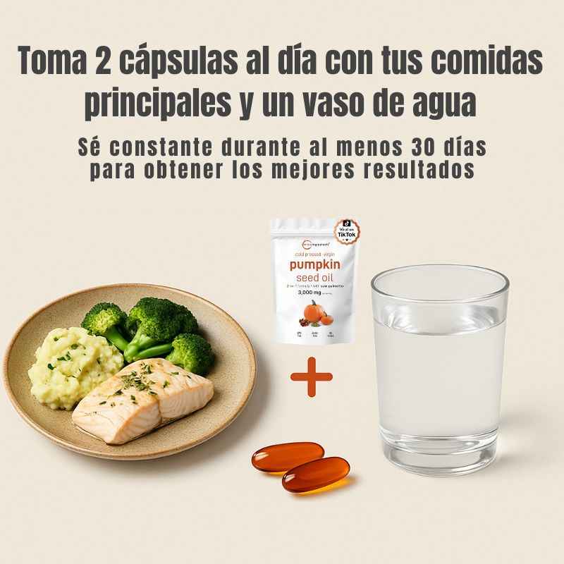 Cápsulas de Aceite de Semilla de Calabaza 2 en 1 | 30 Capsulas Gratis