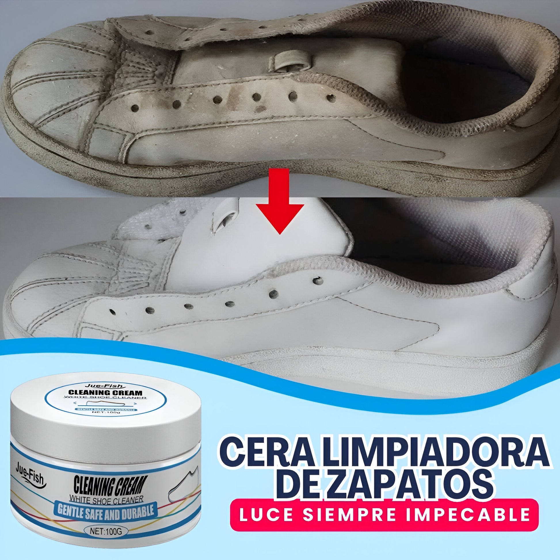 Su fórmula avanzada con abrasivos de alta eficacia remueve la suciedad y las manchas cuidadosamente, sin comprometer la integridad de los materiales de tus zapatos.