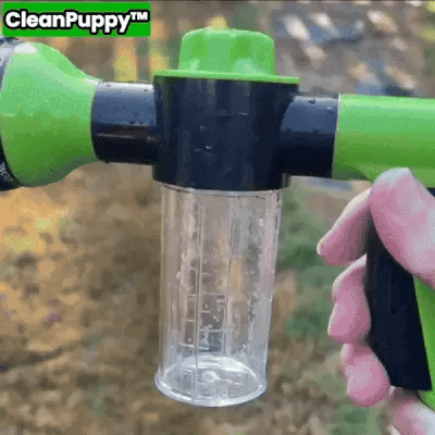 Olvídate de esos baños que son un dolor de cabeza. Con CleanPuppy™, solo conectas a la manguera, ajustas el rociador, y en minutos tu perro está limpio. Tiene 8 modos de rociado y un dispensador de jabón para facilitar todo el proceso.