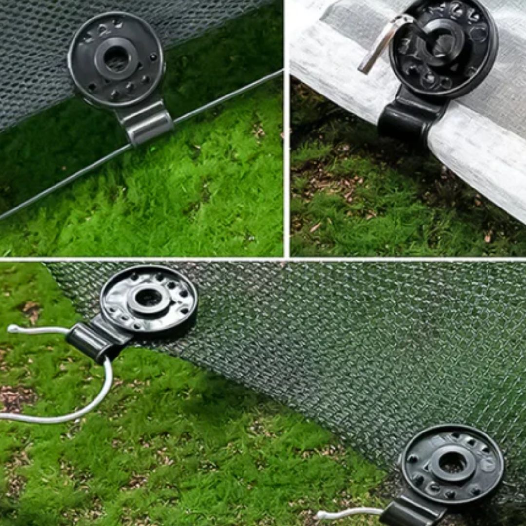 La durabilidad y reutilización de los clips permiten ahorrar dinero al reducir la necesidad de reemplazar la polisombra. Además, su diseño facilita mover la polisombra a cualquier lugar que desees, creando espacios más cómodos y seguros en jardines y patios.