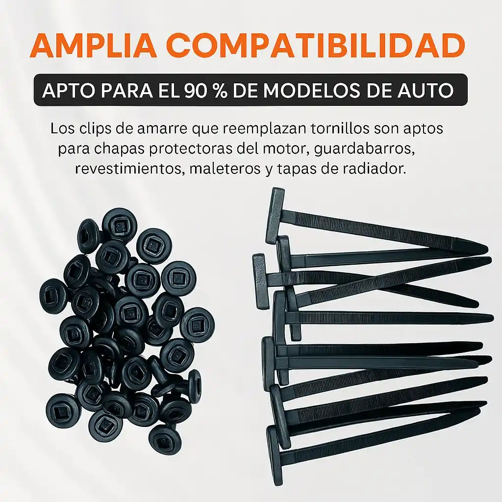 Estos clips se adaptan perfectamente a zonas como guardabarros, maleteros y protectores del motor, cubriendo más del 90% de los modelos de autos del mercado.