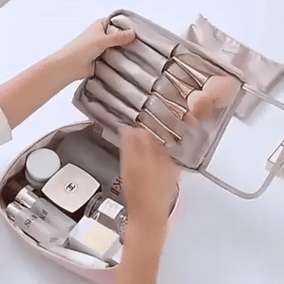 La Cosmetiquera Luxury™ está hecha con materiales impermeables y acolchados para proteger tus cosméticos. No tendrás que preocuparte por brochas sucias o productos dañados, ya que cada compartimento mantiene todo organizado y seguro.