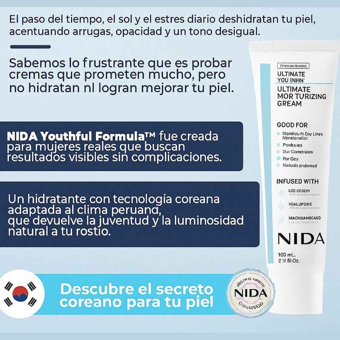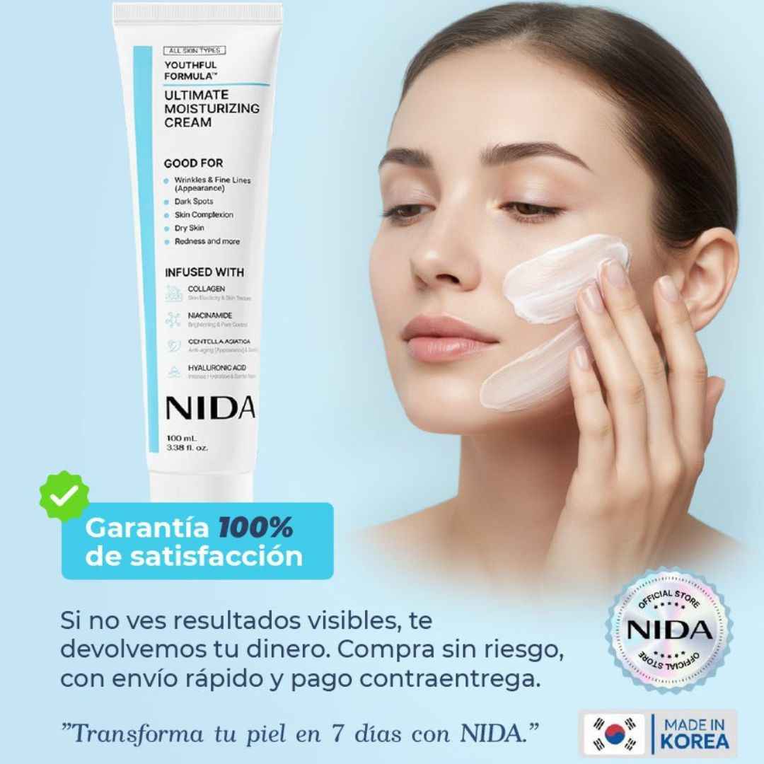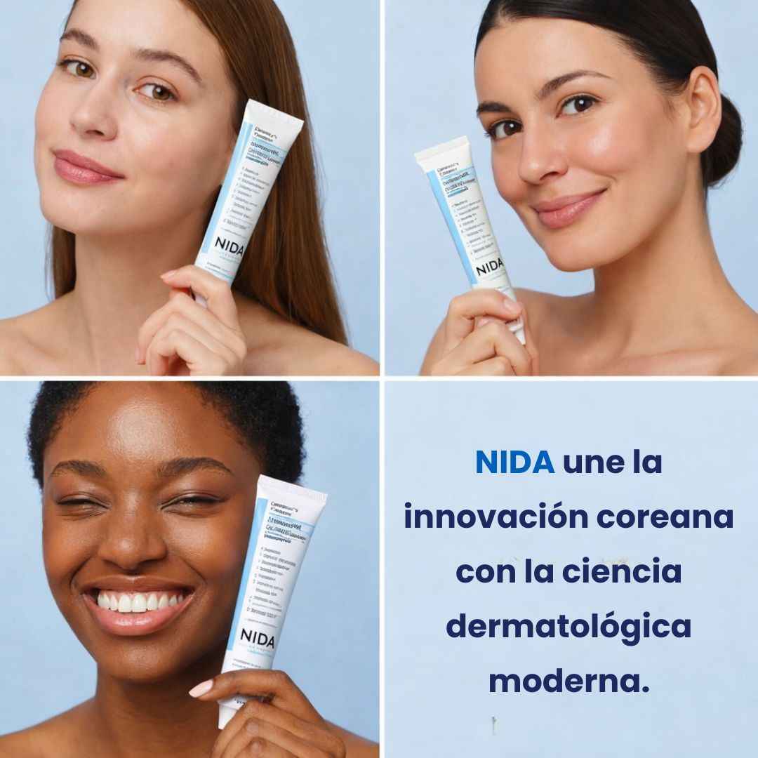 Despídete de arrugas, manchas y ojeras con NIDA, una fórmula avanzada inspirada en el skincare coreano que hidrata profundamente, mejora la textura y devuelve luminosidad visible desde los primeros días.