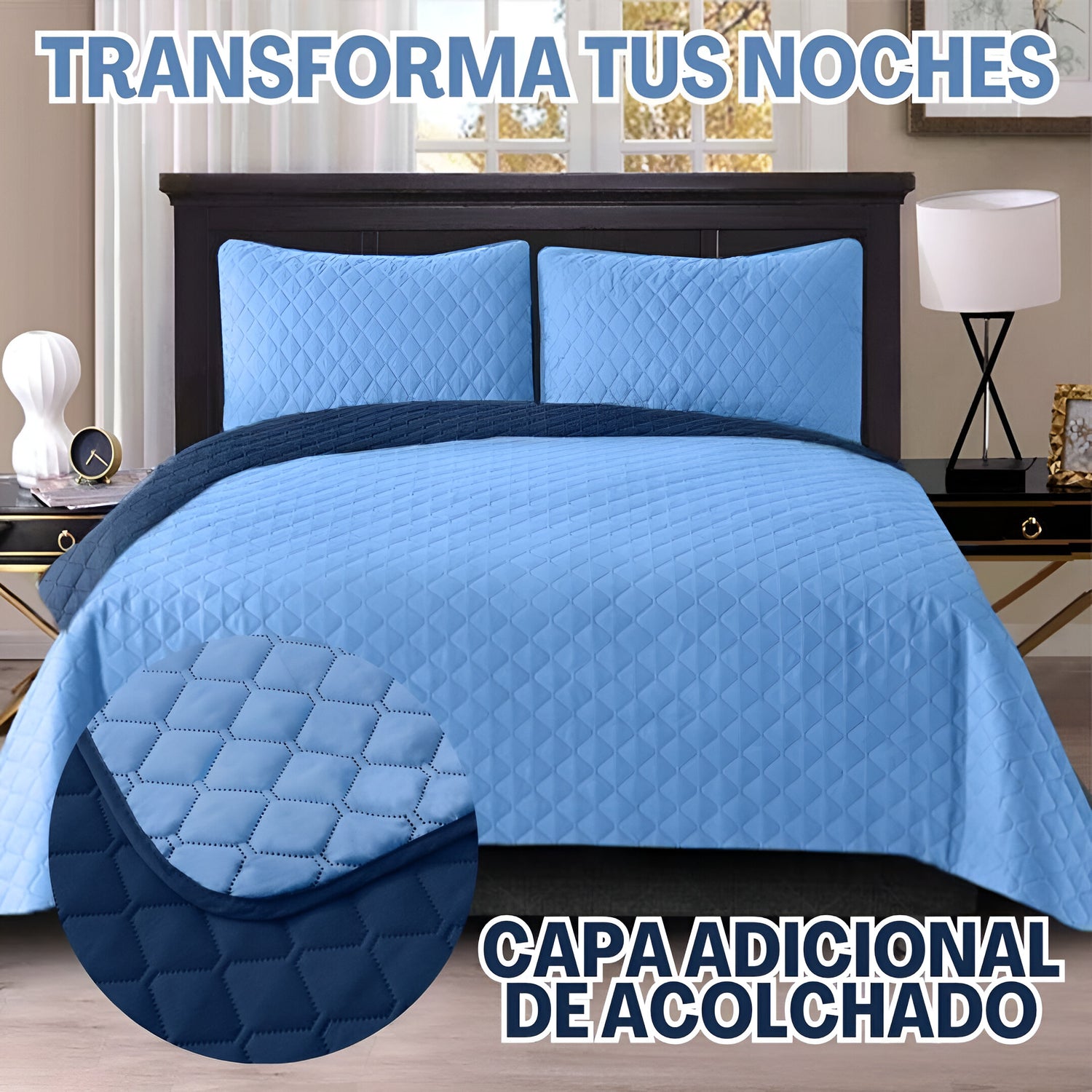 Cada detalle de nuestro cubrelecho ha sido minuciosamente diseñado: su grosor perfecto añade una capa extra de confort, y su mantenimiento sencillo asegura comodidad duradera noche tras noche.
