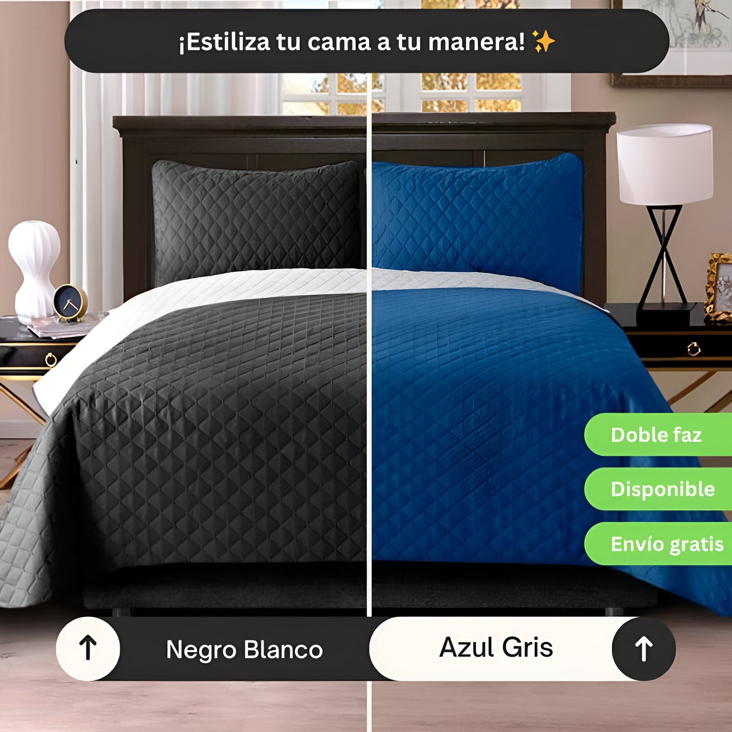 Descubre el lujo y la versatilidad de nuestros Cubrelechos Doble Faz de lujo. 🌟 ¡Haz de tu cama el centro de atención!
