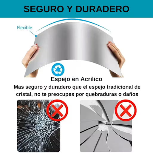 Con nuestro espejo indestructible MIRRORFLEX™, puedes estar segura de salir de casa siempre perfecta. Su durabilidad y calidad garantizan que cada reflejo te brinde la confianza necesaria para enfrentar el día con seguridad y estilo.