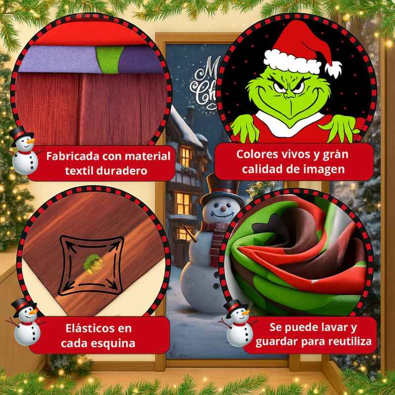 Con nuestra Funda Navideña Premium, decorar tu entrada es fácil, rápido y elegante. Se ajusta en segundos, no necesitas clavos ni ganchos, y el resultado es una puerta completamente transformada en un escenario mágico de Navidad.