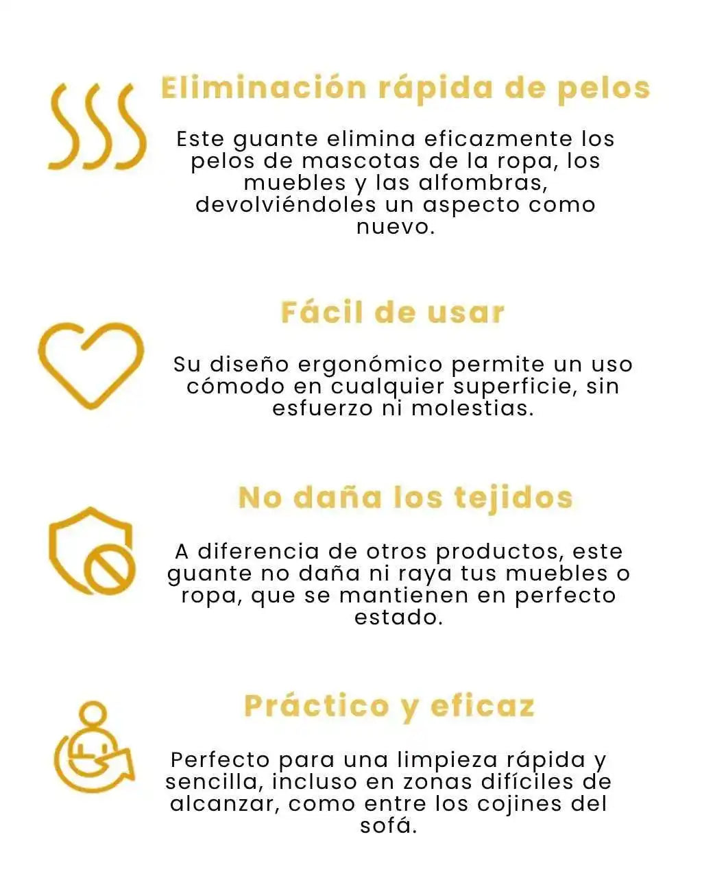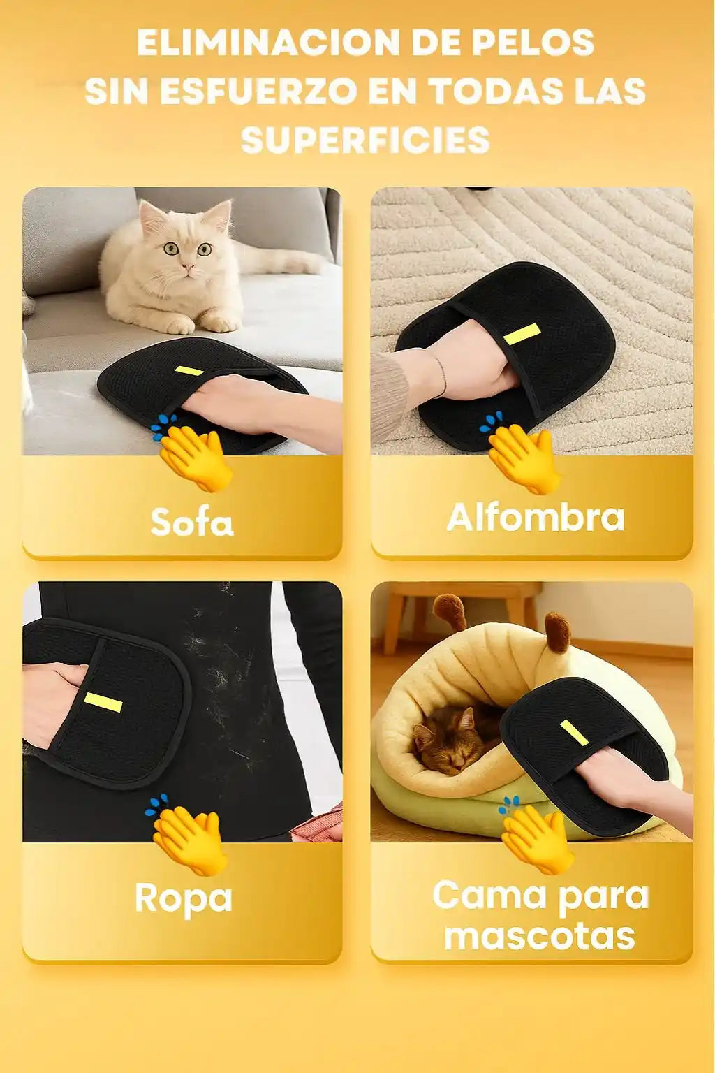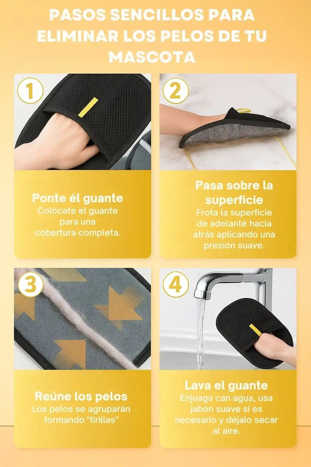 Gracias a su tecnología electrostática, el guante atrae y atrapa los pelos de tus mascotas como un imán, dejando cada superficie impecable.