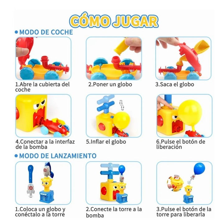 Los globos impulsan los carros, permitiendo que tus peques se diviertan mientras aprenden de manera fácil y entretenida sobre la aerodinámica.