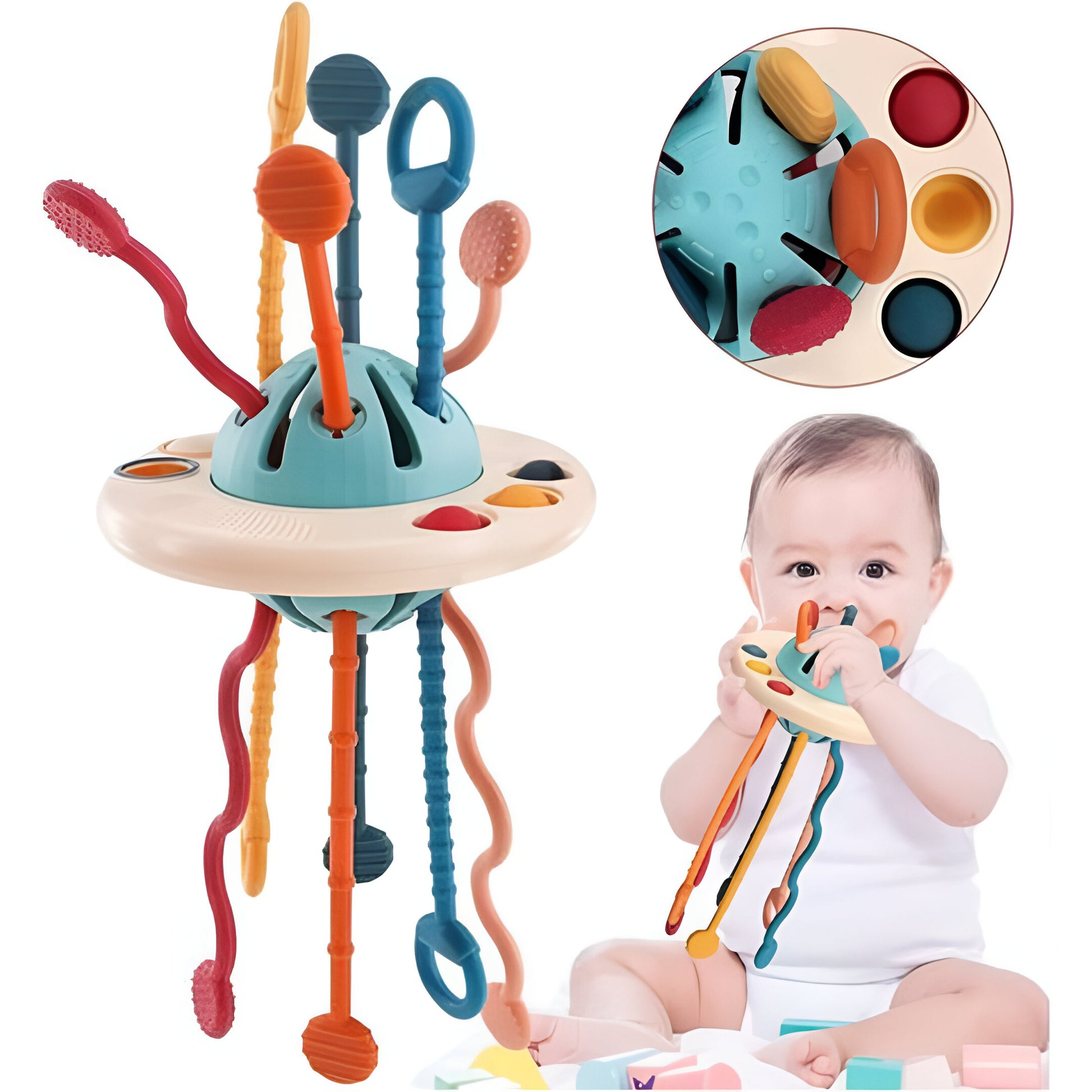 Fomenta el desarrollo temprano de tu bebé y alivia el dolor de sus encías con este juguete diseñado para potenciar su aprendizaje sensorial.