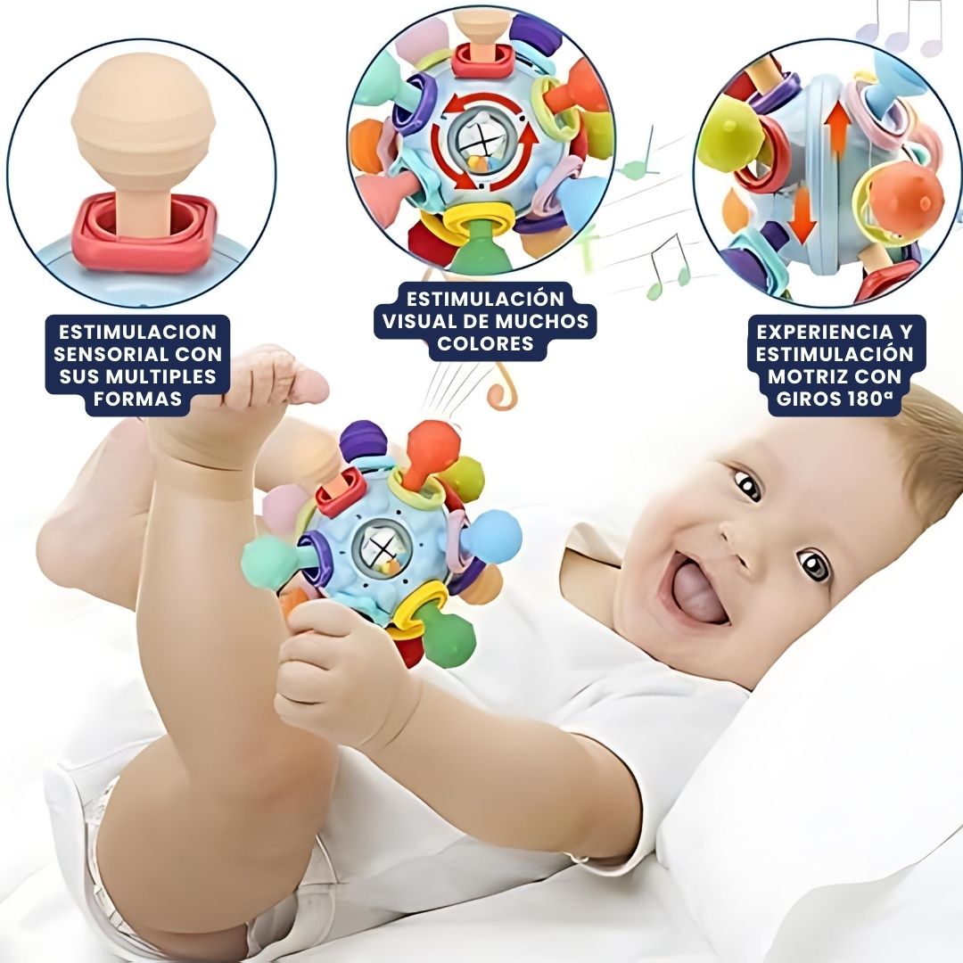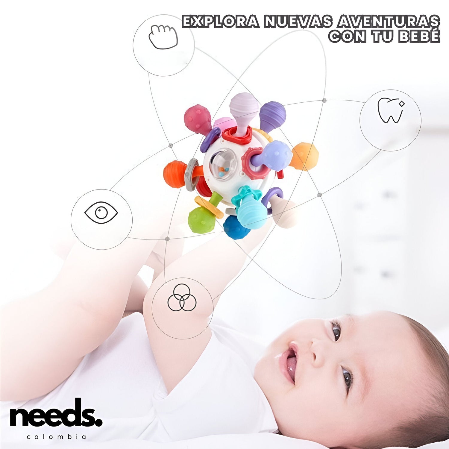 La Sociedad Colombiana de Pediatría (SCP) ha comprobado que mordedores sensoriales, como este, que combinan texturas y sonidos, pueden aliviar el dolor de encías y calmar a los bebés, ayudándolos a sentirse más tranquilos durante la salida de sus dientes.