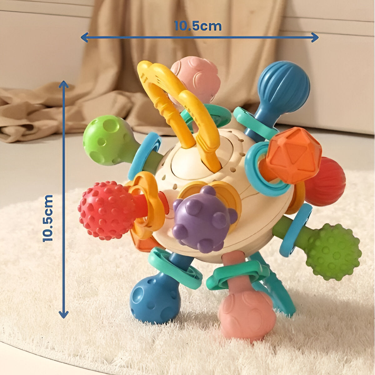 Este juguete está diseñado para bebés desde el nacimiento hasta los 24 meses. Es ideal para la etapa cuando están saliendo sus primeros dientes y también como un estimulante sensorial temprano, lo que lo hace perfecto para bebés y niños pequeños.