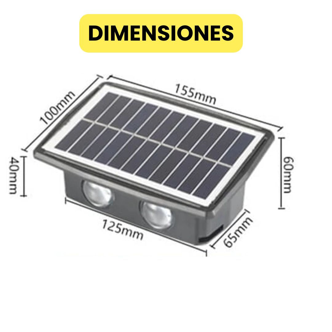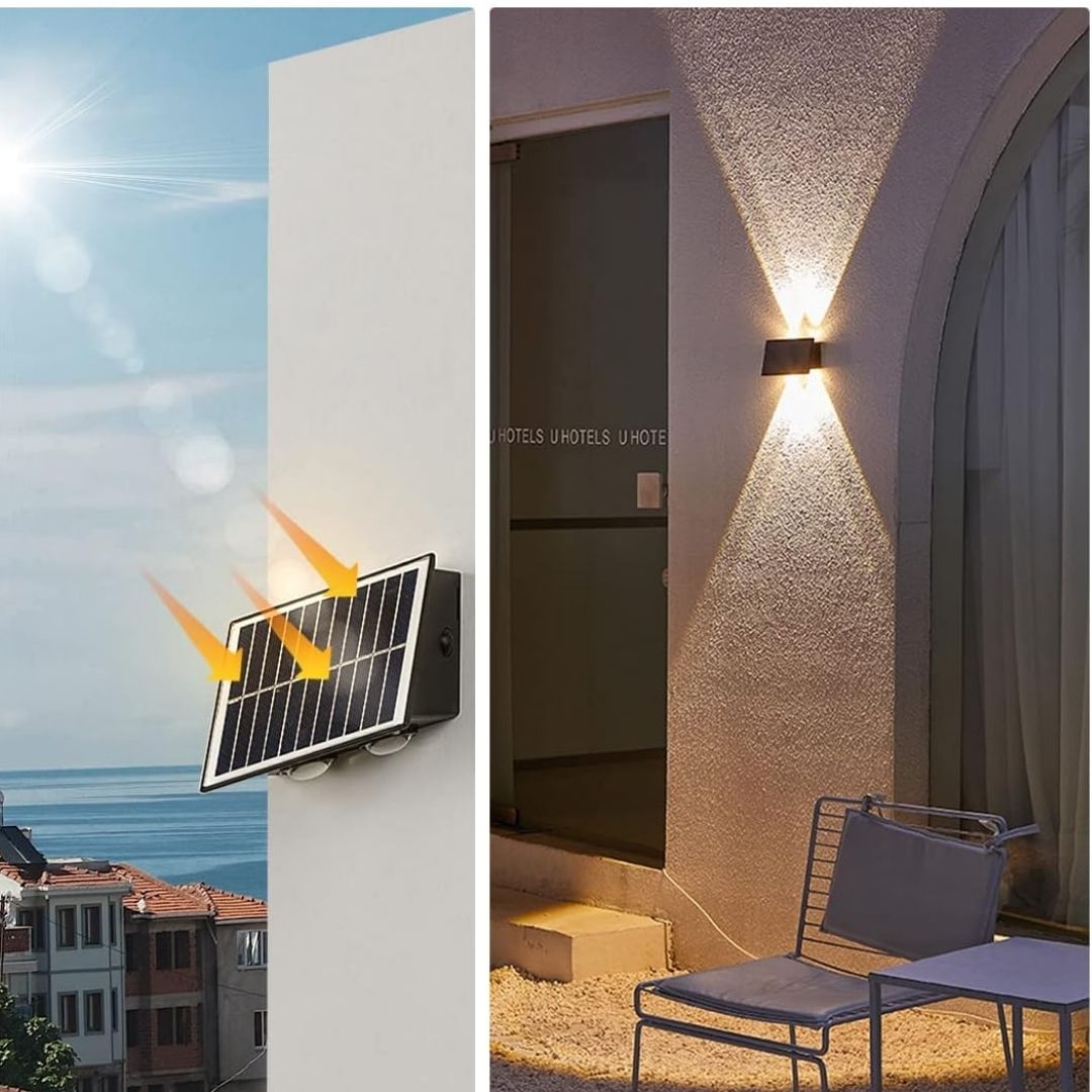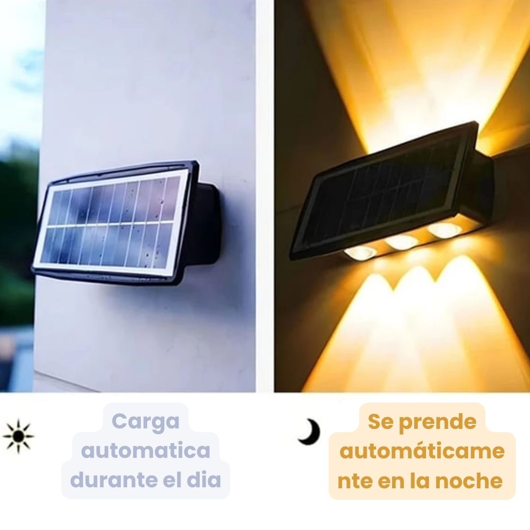 Con su diseño moderno, nuestras lámparas solares iluminan en ambas direcciones, creando un efecto elegante que transforma cualquier espacio.