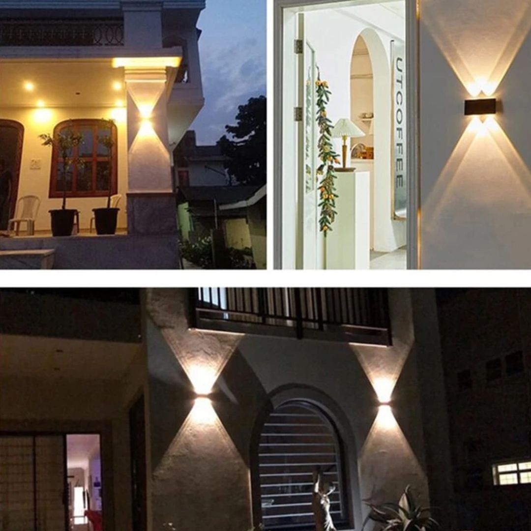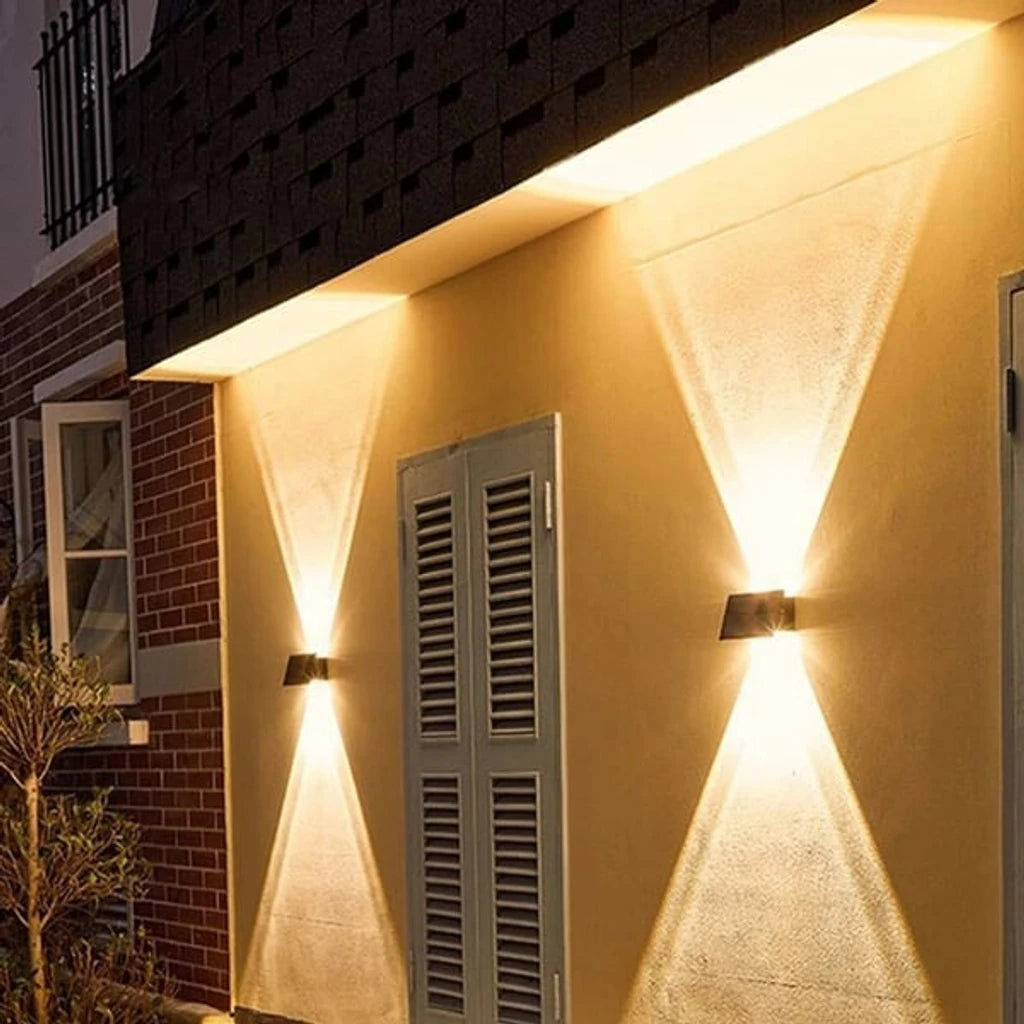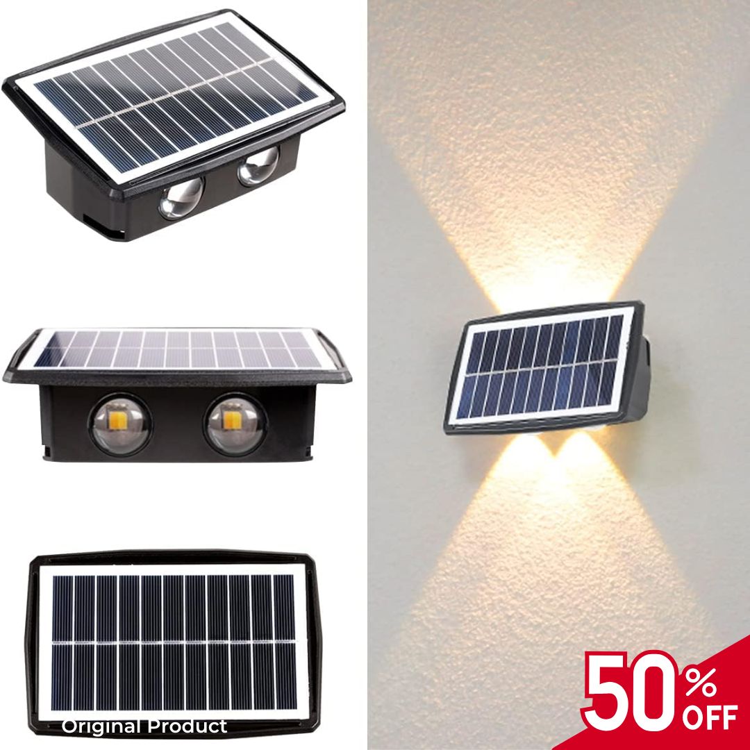 Con su diseño moderno, nuestras lámparas solares iluminan en ambas direcciones, creando un efecto elegante que transforma cualquier espacio.