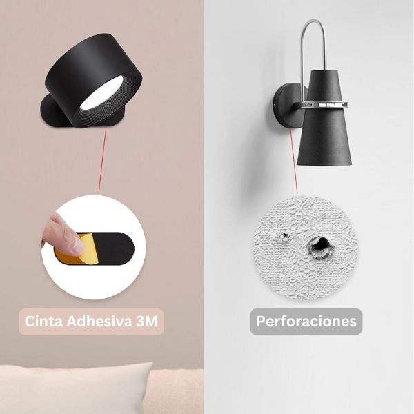 No hay líos con taladros ni herramientas. Nuestra lámpara viene con un adhesivo ultra adherente que permite su instalación en menos de 5 minutos.