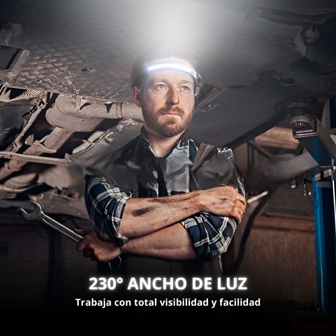 Ideal para trabajos nocturnos, nuestra linterna frontal LED brinda un amplio haz de 230°, asegurando visibilidad y confianza. Con su diseño recargable, ajustable y resistente al agua, es la herramienta perfecta para cualquier tarea en la oscuridad.