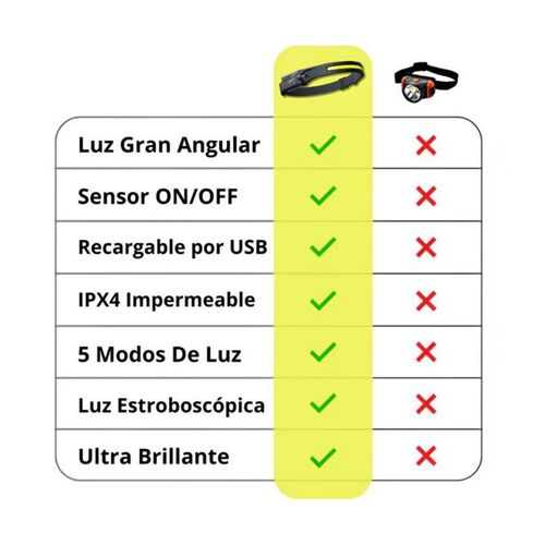 1* Linterna Frontal Multifuncional con sensor LED Recargable.