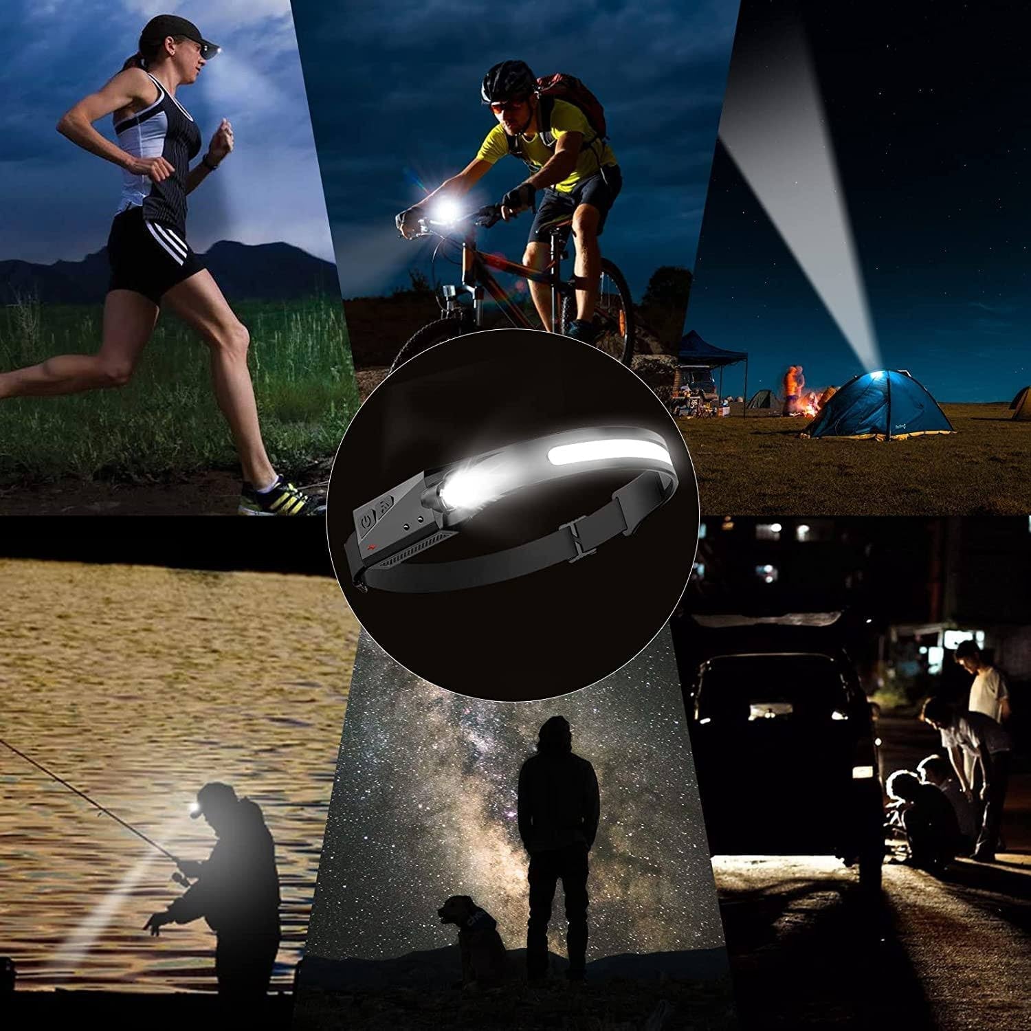 La Linterna Frontal LED 230° está equipada con una innovadora función de sensor que te permite encender y apagar la luz con un simple gesto de la mano.