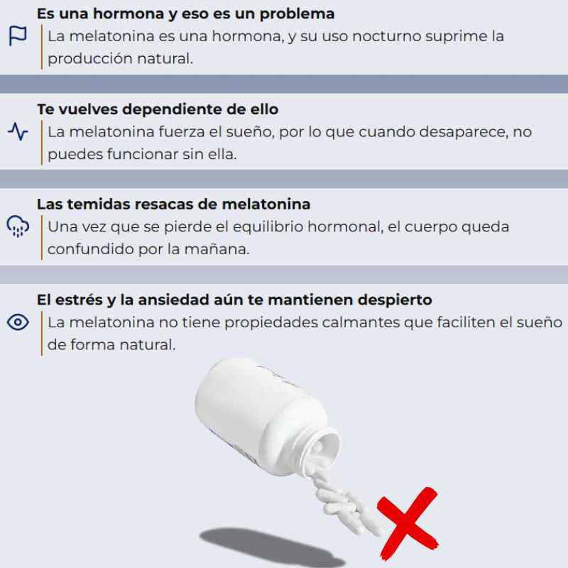 🌿 Sin melatonina ni hormonas: No altera tus ciclos naturales ni genera dependencia.