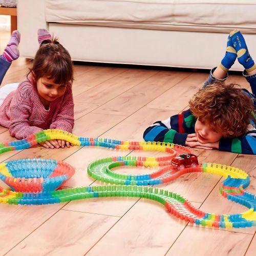 ¡Deja que exploren, imaginen y creen sin límites! Con Magic Tracks™, tus hijos pueden diseñar sus propios circuitos de carreras, estimulando su creatividad mientras disfrutan de pistas que brillan en la oscuridad y coches LED que llenan cualquier habitación de emoción y magia.