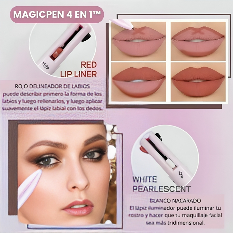 MAGICPEN™ : LÁPIZ DE MAQUILLAJE 4 EN 1 | DELINEADOR OJOS, CEJAS, LABIOS E ILUMINADOR