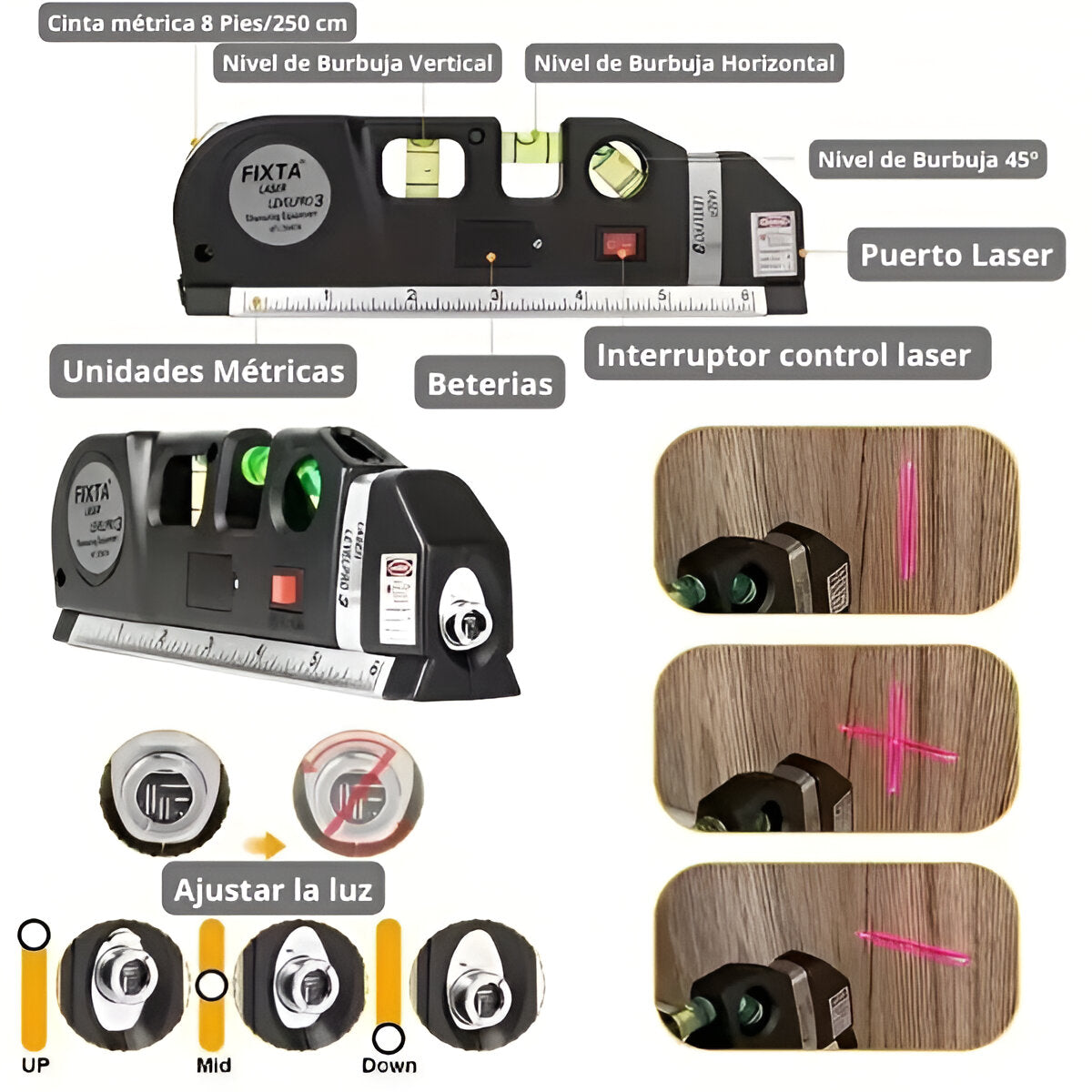 Con este láser cada tarea se hace en un abrir y cerrar de ojos, desde estructuras, hasta acabados, todo queda derechito sin complicaciones, simplifica tu trabajo y garantiza resultados impecables en cada proyecto.