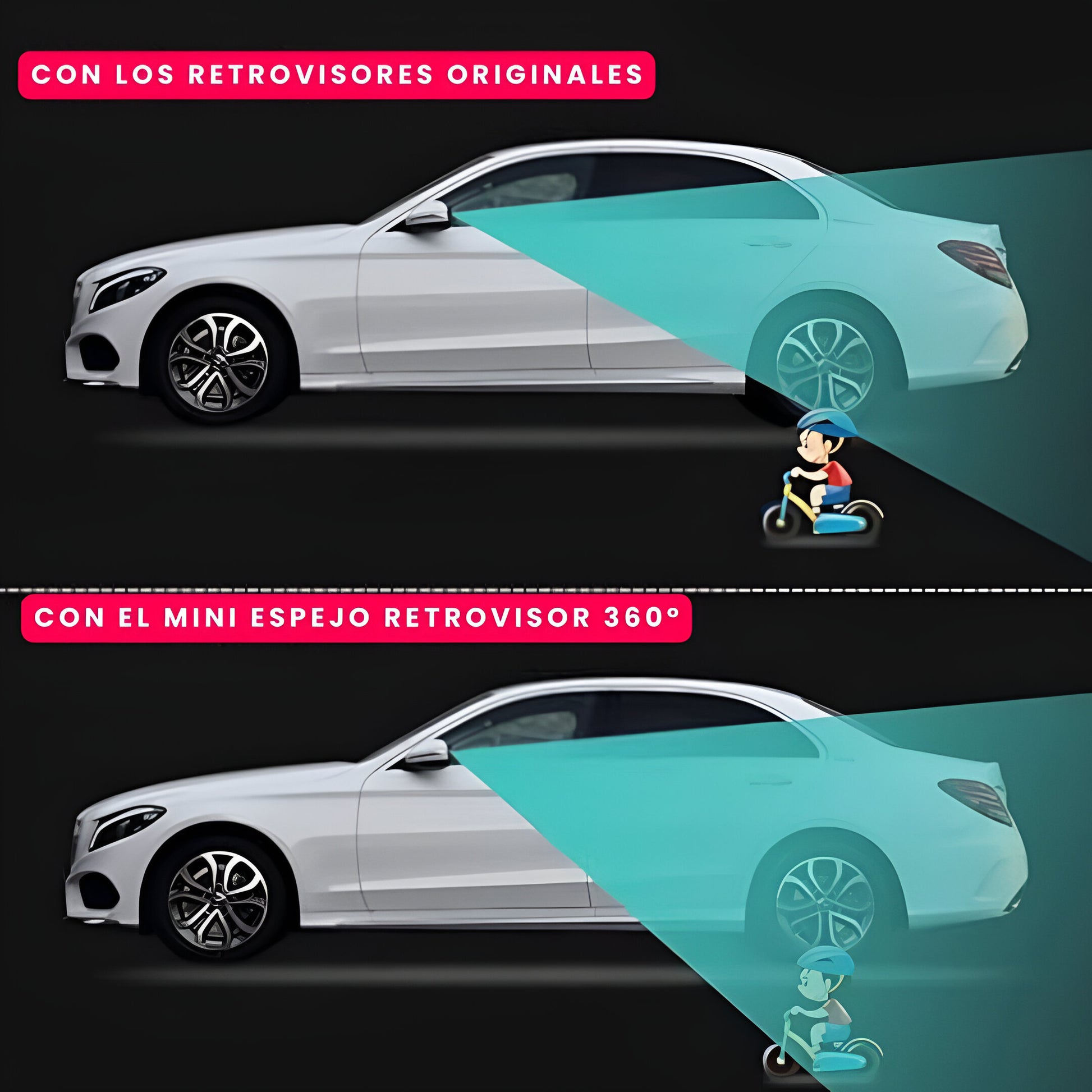 ¡Llegó el momento de decir adiós a los puntos ciegos. Conduce y estaciona con absoluta seguridad! Te presentamos nuestro mini espejo retrovisor de rotación completa de 360º.