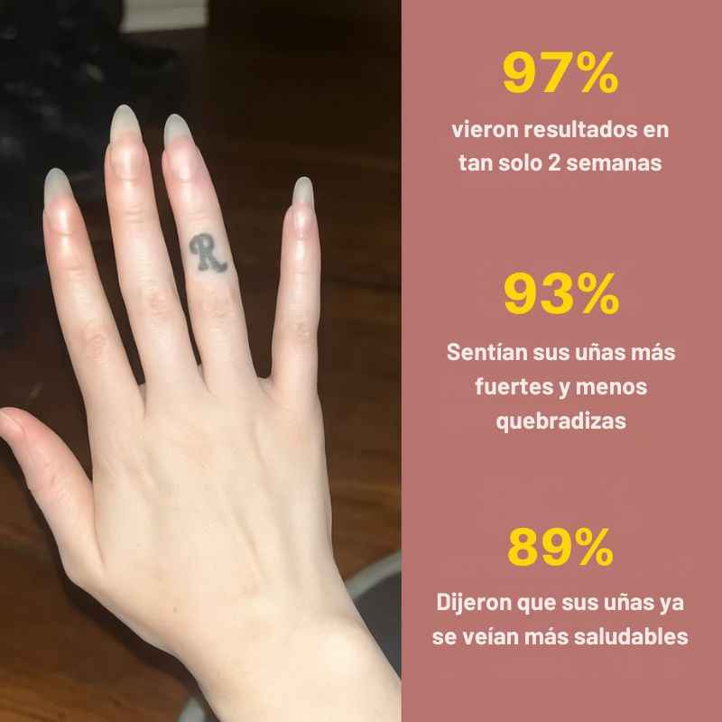 La mayoría nota cambios visibles en 7 a 14 días. Con uso diario, las uñas se vuelven más fuertes y largas en 2 a 4 semanas.