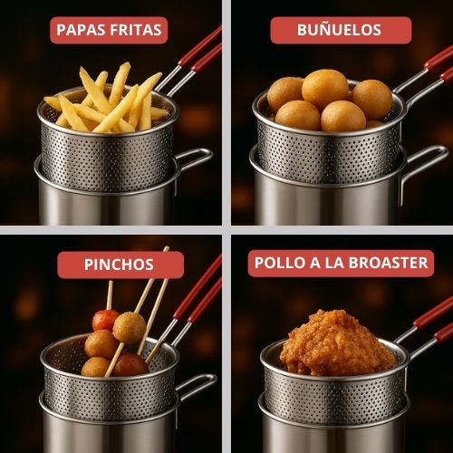 Papas, empanadas, buñuelos, plátano, deditos, alitas... cualquier cosa que quieras freír de forma más rápida, segura y sin tanta grasa.