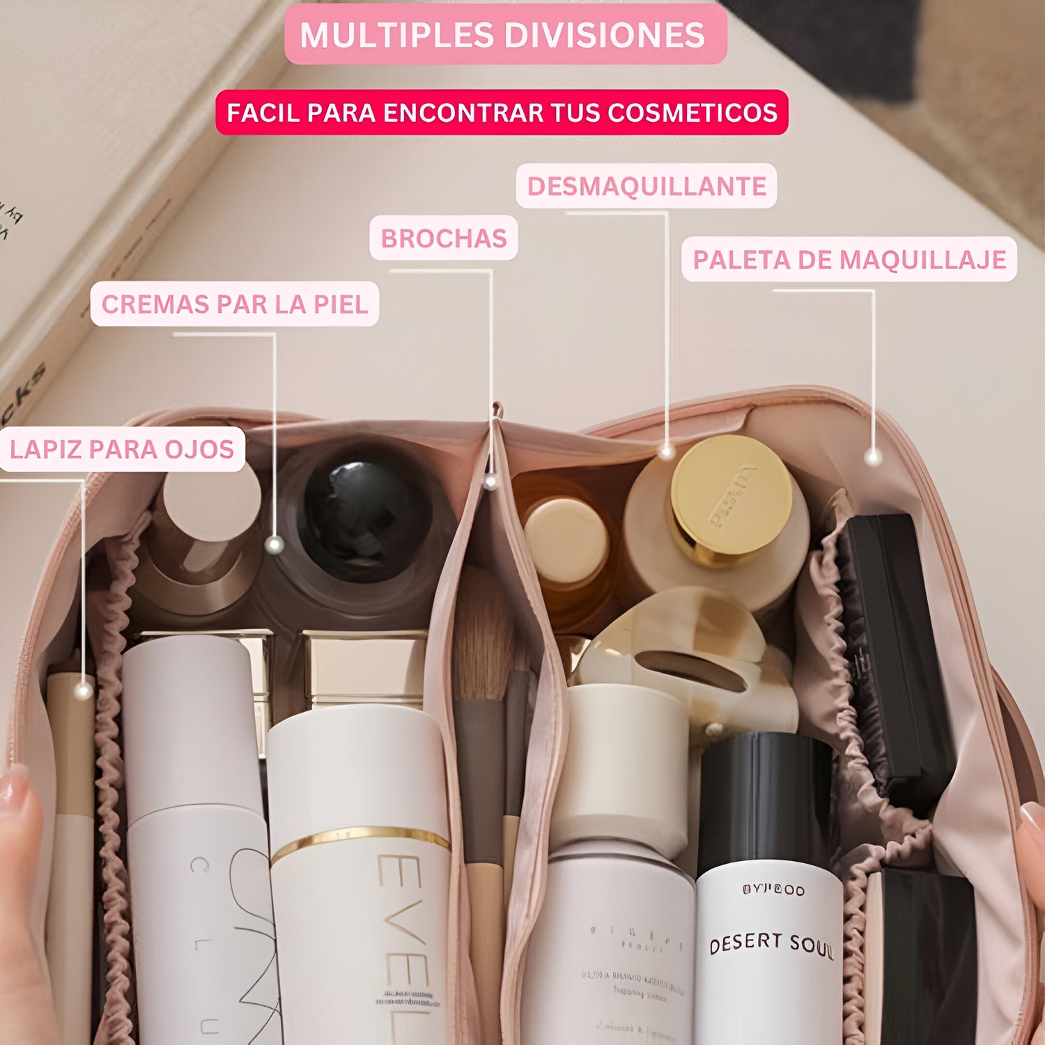 Sí, cuenta con varios compartimentos y bolsillos internos diseñados para mantener tus productos separados y organizados, facilitando el acceso rápido a lo que necesitas.