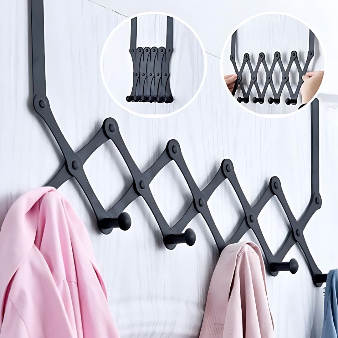 Con un diseño ajustable, este perchero se adapta a diferentes puertas, facilitando el orden y la organización de tu espacio.