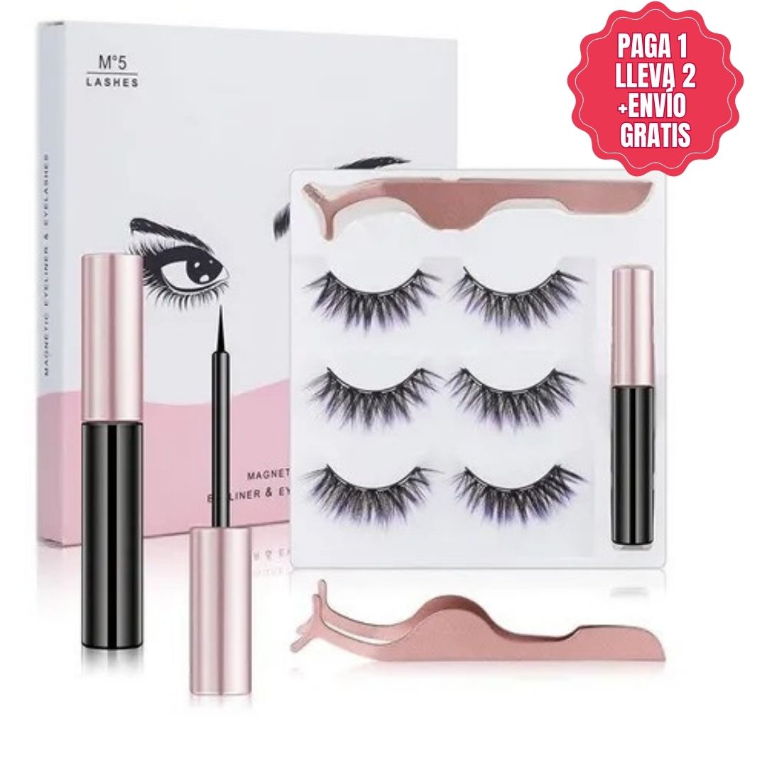 LashMagnet™: Kit Pestañas Magnéticas Reutilizables X 3 + Delineador | Paga 1 Lleva 2