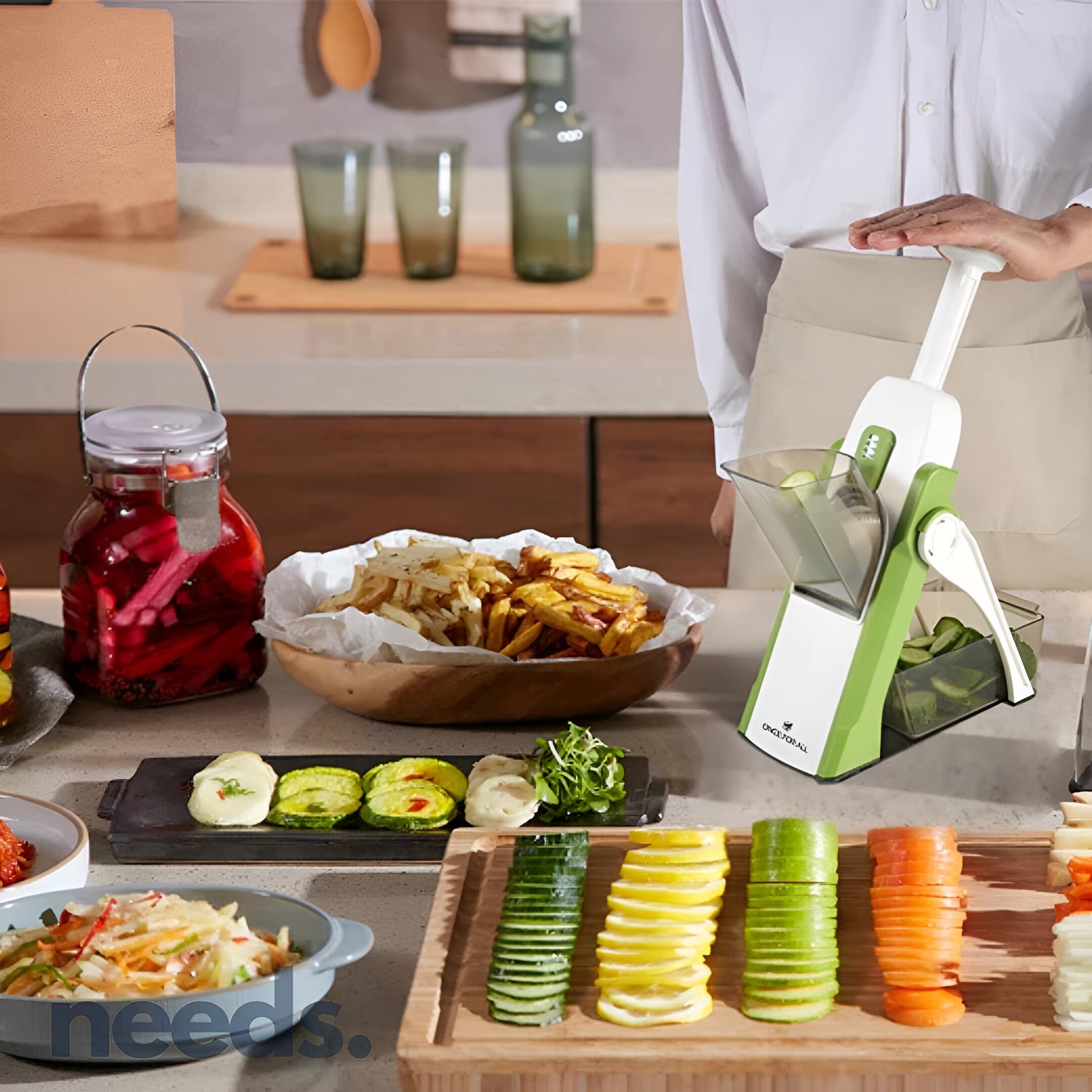 Este utensilio está diseñado para revolucionar tu experiencia culinaria, equipado con cuchillas ajustables que te brindan la libertad de seleccionar entre una diversa gama de cortes, desde las más delicadas julianas hasta rodajas uniformes y perfectas.