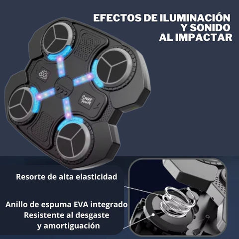 Tiene conexión Bluetooth para que entrenen con su música favorita mientras las luces los guían en cada golpe.