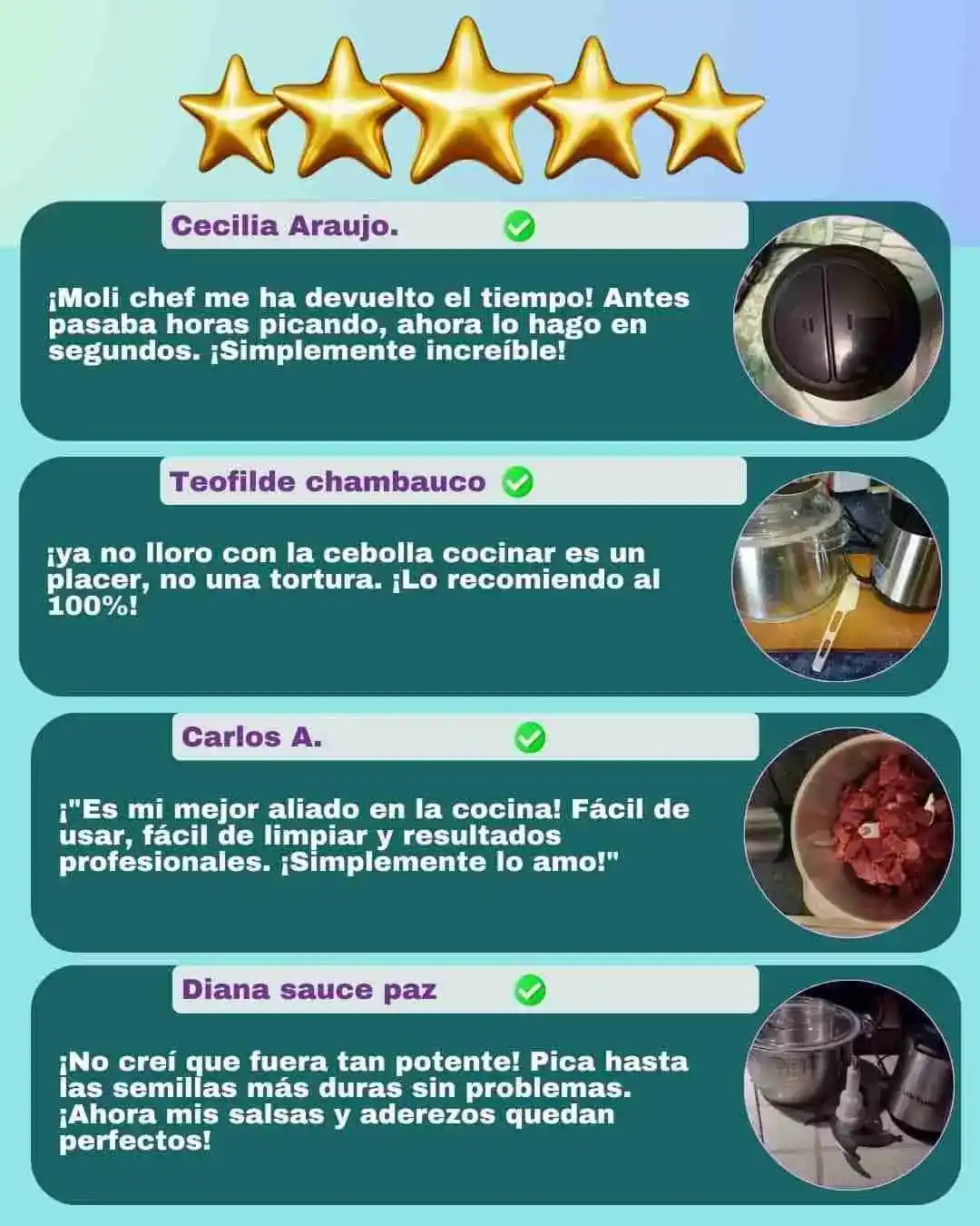 El Moli Chef es ideal para picar una gran variedad de alimentos, especialmente: