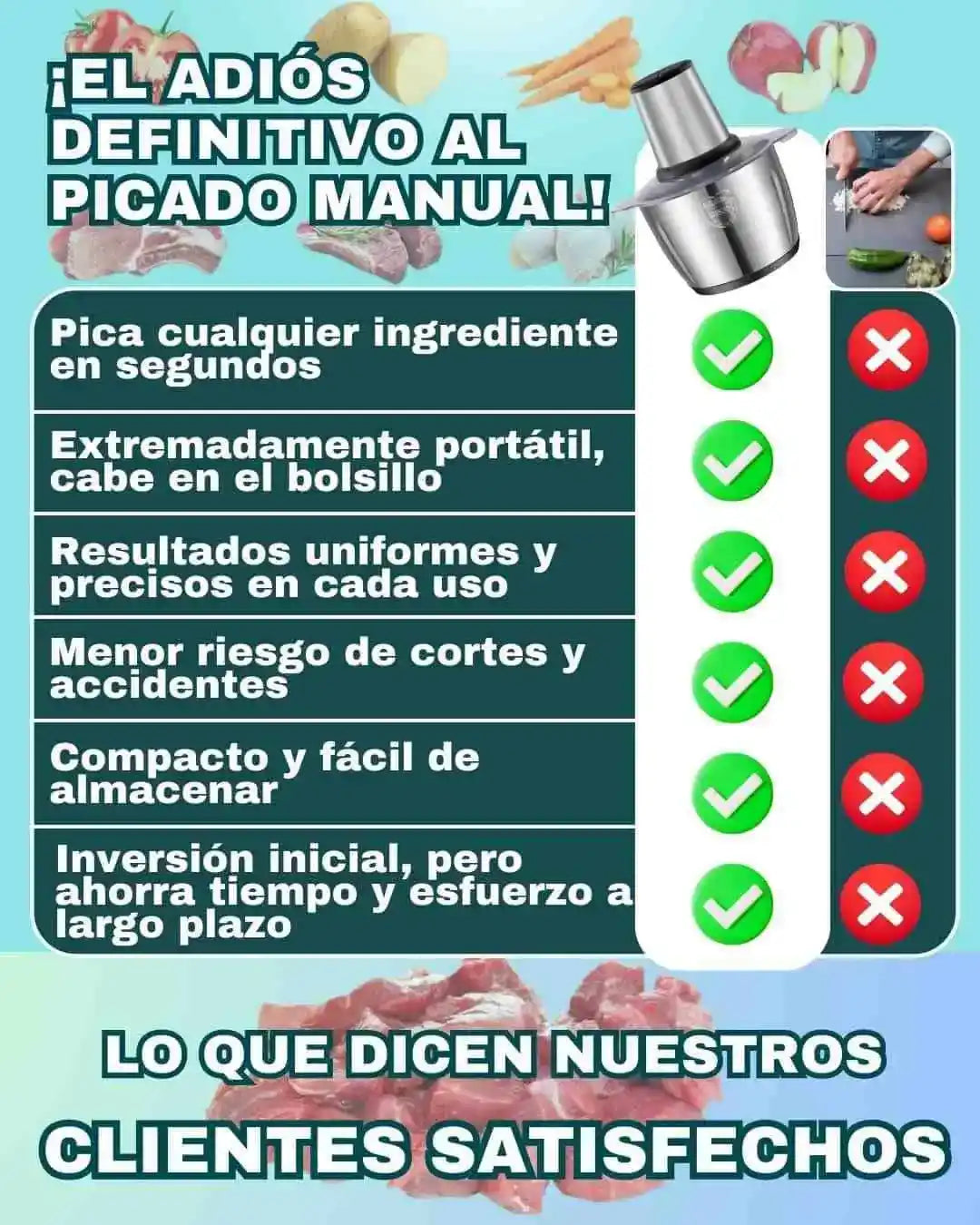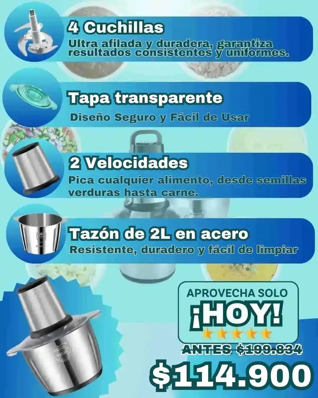 Pica, tritura, mezcla y muele. Puedes hacer desde carne molida hasta papillas, cremas, sofritos y rellenos. Es un verdadero 4 en 1 para tu cocina.