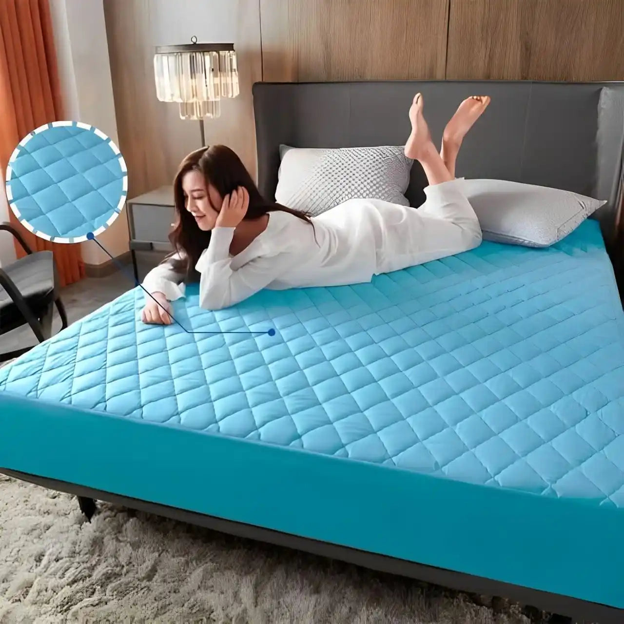 Este protector no suena al moverse, no retiene el calor y se siente completamente natural bajo las sábanas, como si no estuviera ahí.